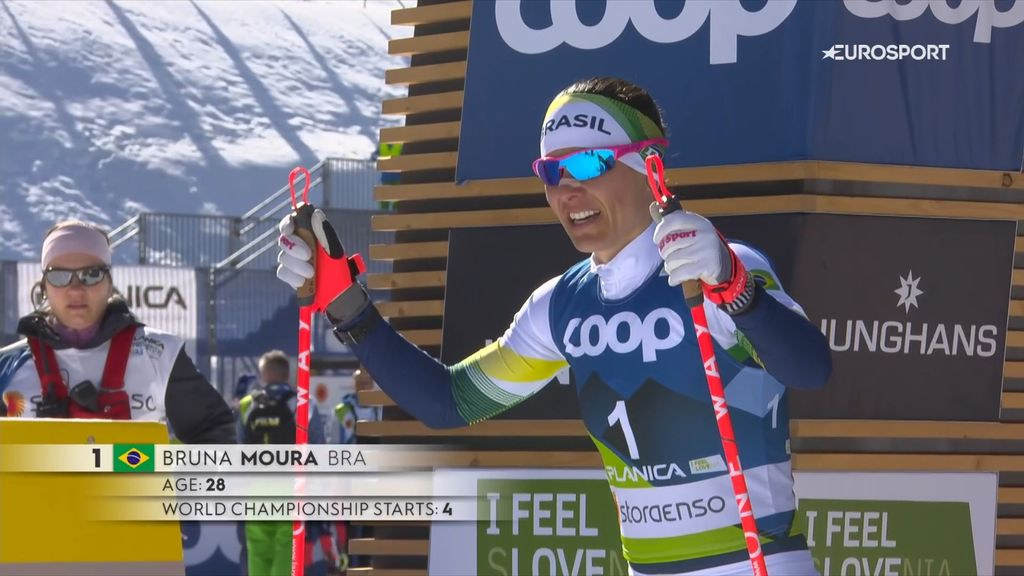 PLANICA - De in Nunspeet wonende Bruna Rafaela Moura doet een jaar na haar zeer ernstig ongeluk weer mee aan het langlauf Wereldkampioenschap noords skiën in Planica, Slovenië. Zij kwam uit voor haar land Brazilië op de 5 km en behaalde vanmiddag een negende plaats.