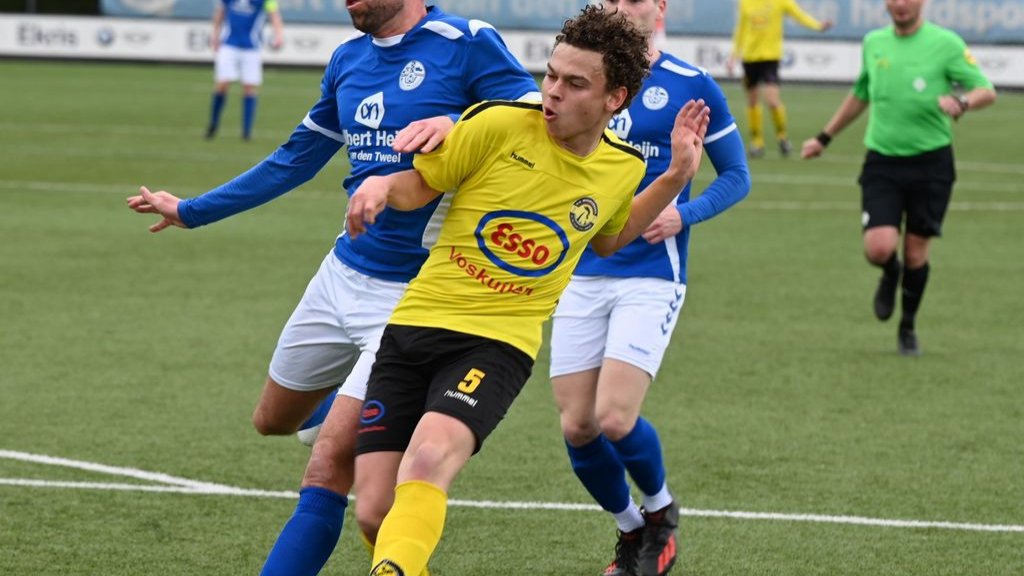 NIJKERKERVEEN - Het staat buiten kijf dat Woudenberg de kampioen wordt in de tweede klasse C maar Veensche Boys heeft dat feestje voorlopig nog even uitgesteld. Op het eigen complex in Nijkerkerveen won Veensche Boys zaterdag 15 april overtuigend met 3-0 van de aanstaande kampioen. Woudenberg had tot dusver nog niet verloren dit seizoen. Alle goals vielen in de tweede helft en werden geproduceerd door de neefjes Rody en Julian Buitenhuis.
