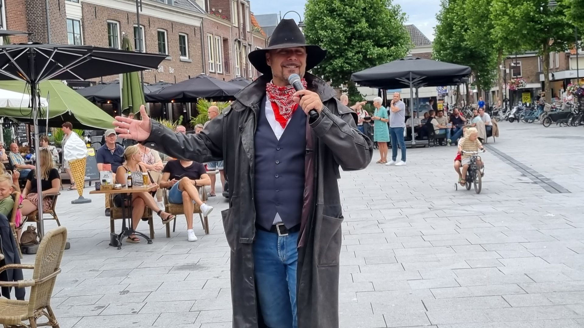 Een en ander vond plaats van 19:30 tot 22:00 uur, zodat de terrassen op de vroege avond goed gevuld bleven en vrolijke gezichten daar de belangrijkste versiering waren.