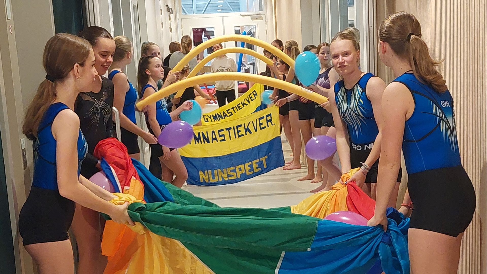 Ze neemt niet alleen afscheid als trainster maar ook als bestuurslid van de vereniging. Woensdag 25 oktober nam zij officieel afscheid in de gymzaal waar zij verast werd door haar turnsters. Zij vormden een mooie erehaag waar zij onderdoor mocht lopen. Vanuit het bestuur en haar turnsters heeft ze ook nog een aantal mooie cadeaus mogen ontvangen. Gerda heeft niet alleen voor de vereniging veel gedaan maar zeker ook voor de meiden van de B-selectie. Ze zullen haar gaan missen.