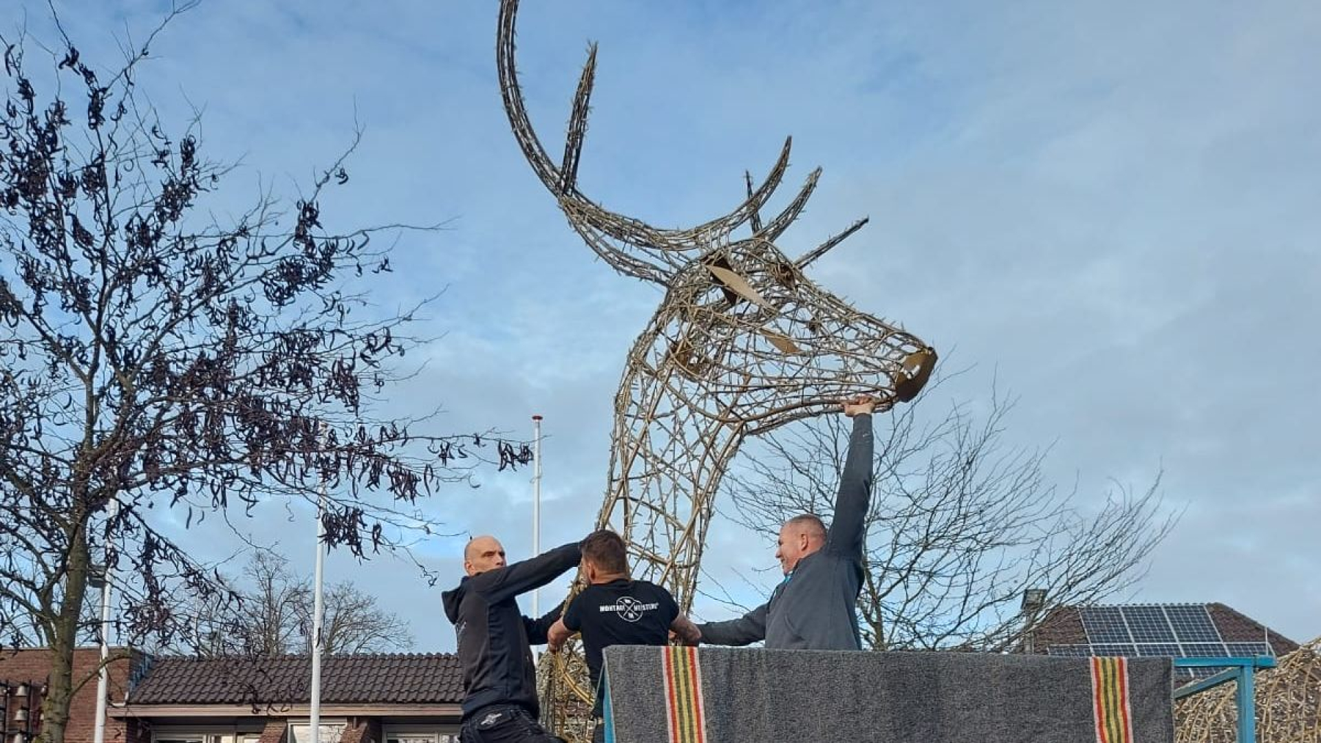 NUNSPEET - Vrijdagochtend is het hoofd weer gerepareerd teruggeplaatst op het hert op de markt en staan de drie herten weer te stralen. Nadat Geert Jan van Olst via Nunspeet uit de Kunst had laten weten € 1000 uit te reiken voor de gouden tip, die naar de daders zou leiden, heeft de dader zich gelukkig zelf gemeld.